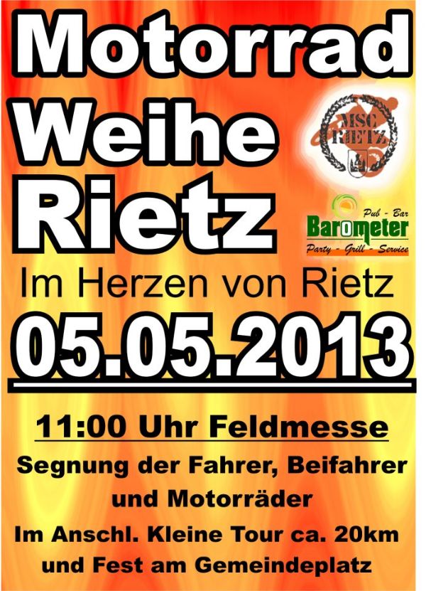 am nägstn sunnti isch in rietz a motorradelweihe.